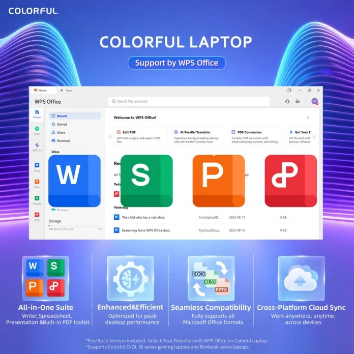 Bên cạnh hiệu năng giải trí, EVOL P15 còn phục vụ tốt nhu cầu học tập và làm việc nhờ bộ WPS Office được cài đặt sẵn trên nền tảng Windows 11 Home. Phần mềm tương thích đầy đủ với các định dạng Word, Excel và PowerPoint phổ biến, cho phép người dùng tạo lập, chỉnh sửa và chia sẻ tài liệu thuận tiện trên nhiều thiết bị và nền tảng khác nhau.