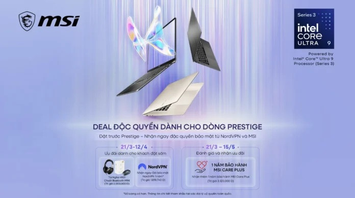 Các mẫu MSI Prestige 2026 đã được mở bán tại Việt Nam với giá khởi điểm từ 48,990,000 VND. Trong giai đoạn đầu, người dùng đặt mua sớm sẽ nhận gói ưu đãi trị giá hơn 7,000,000 VND.