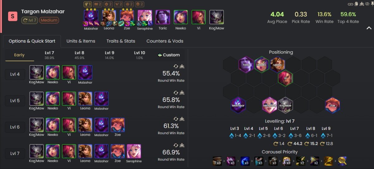 Tuy nhiên khi mà vòng 5.x hay thậm chí 4.x đã có thể trở thành cửa tử của mọi game thủ thì việc reroll 3 vàng lại không hề đơn giản chút nào. Đặc biệt là khi Targon lẫn Hư Không đều đang khá được trọng dụng trong lobby, cả Zoe lẫn Malzahar đều sẽ là những quân bài cực khó để lên được 3 sao nếu như bạn không nắm vững kĩ năng và tận dụng tốt thời điểm hoàn hảo.