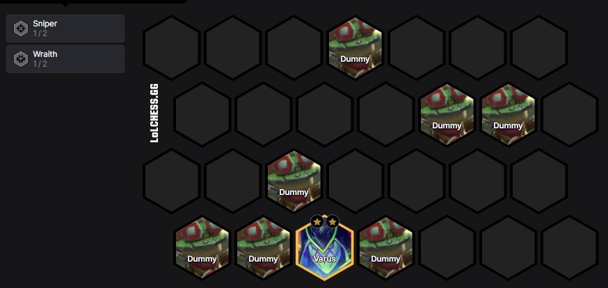 Đây là cách xếp bài thường thấy ở đội hình Caitlyn - Jayce reroll khi tạo khoảng trống để Caitlyn có thể bắn thẳng vào chủ lực của đối thủ. Tuy nhiên khi đối đầu với Akali, cách xếp bài này cũng tỏ ra rất hiệu quả bởi nó khiến cho Akali có xu hướng tấn công loạn xạ thay vì nhắm vào chủ lực Caitlyn. Vì vậy, bạn hoàn toàn có thể tham khảo cách sắp xếp này để khắc chế những đội hình có sử dụng Akali.