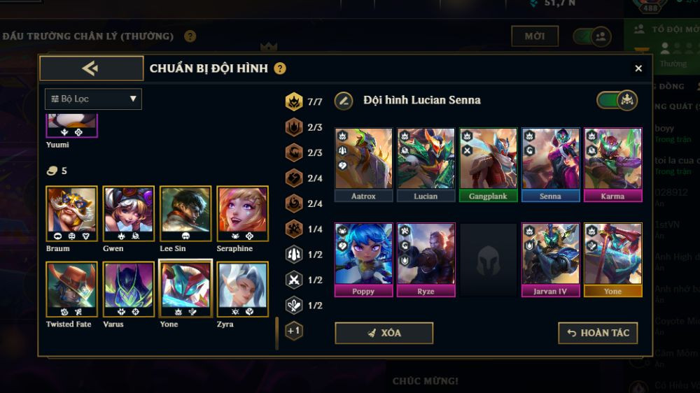 Mặc dù Senna đã bị giảm sức mạnh trong bản cập nhật ĐTCL 15.4, nhưng với sự xuất hiện của Trái Thức Tỉnh mới - Cặp Đôi Drift, bộ đôi Lucian và Senna hoàn toàn có thể kết hợp để trở thành những chủ lực chủ chốt trong đội hình Đại Cơ Giáp. Tuy là một đội hình hoàn toàn mới nhưng ở nhưng lobby Thách Đấu, số lượng cờ thủ spam Lucian Senna reroll đang không ngừng tăng lên.