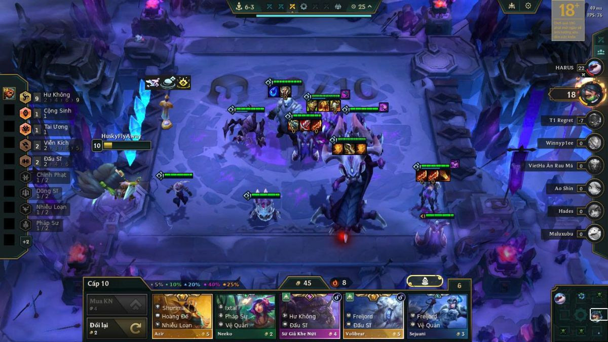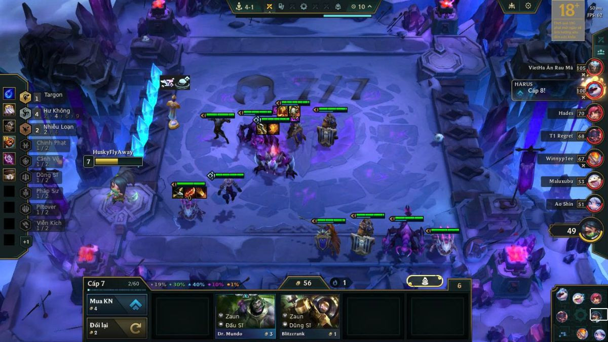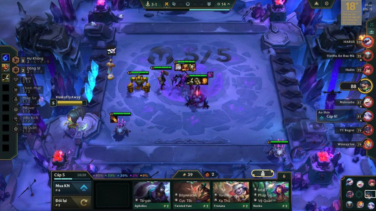 - Cấp 5: Dùng các tướng rẻ - mạnh theo thời điểm để ổn định máu đầu game: