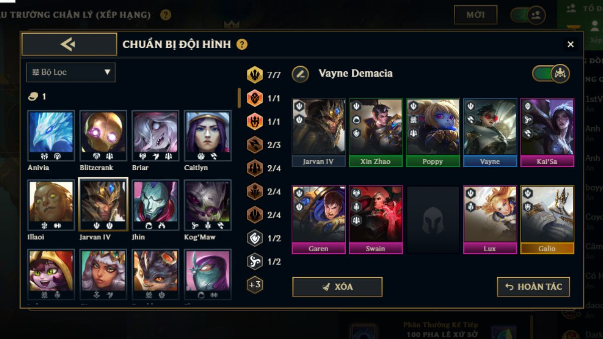 Gợi ý khung đội hình Vayne Demacia ở cấp 8