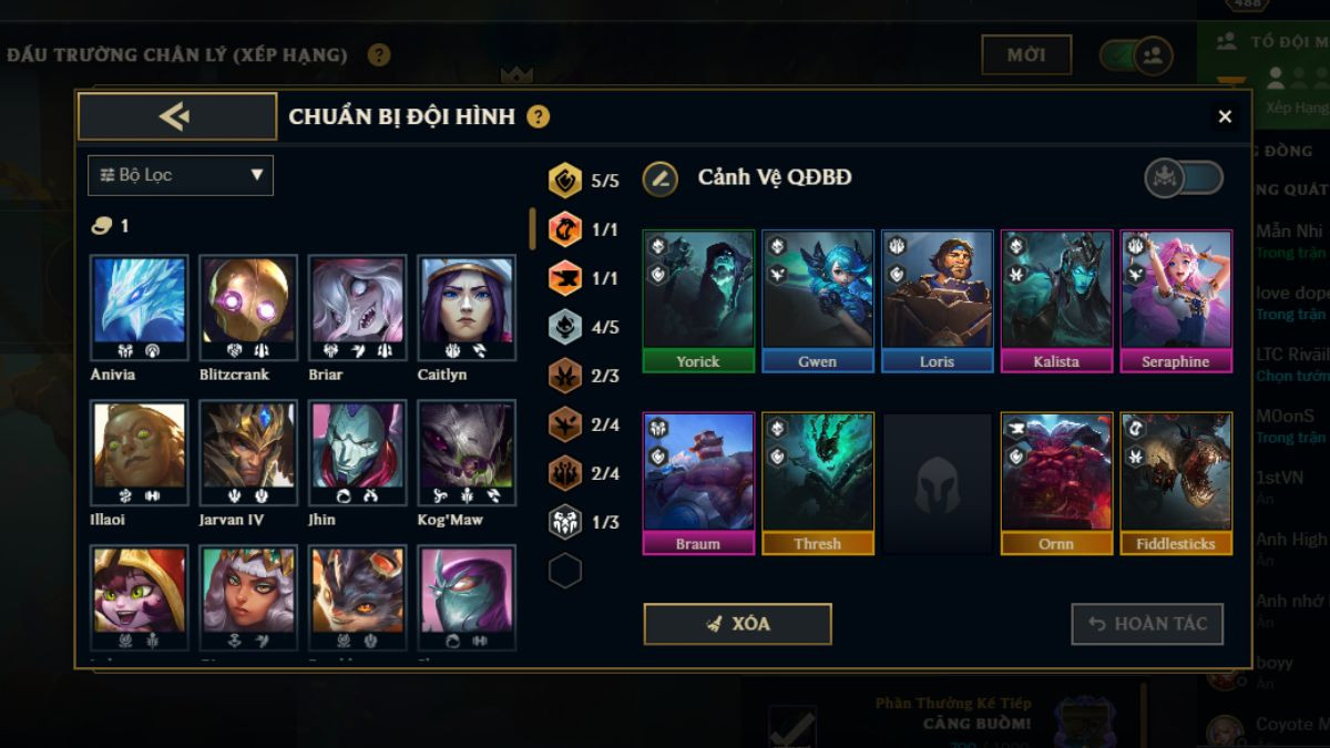 Bộ tộc hệ này cũng giúp người chơi làm quen nhanh với cơ chế nhiệm vụ mở khóa tướng độc đáo của mùa mới, khi bạn chỉ cần thu thập linh hồn để triệu hồi thêm các đơn vị mạnh mẽ khác. Khung đội hình Cảnh Vệ Quần Đảo Bóng Đêm hoàn thiện ở cấp độ 9 sẽ bao gồm: Yorick, Gwen, Loris, Kalista, Seraphine, Braum, Thresh, Ornn và Fiddlesticks. Dưới đây là combo trang bị phù hợp dành cho các chủ lực: