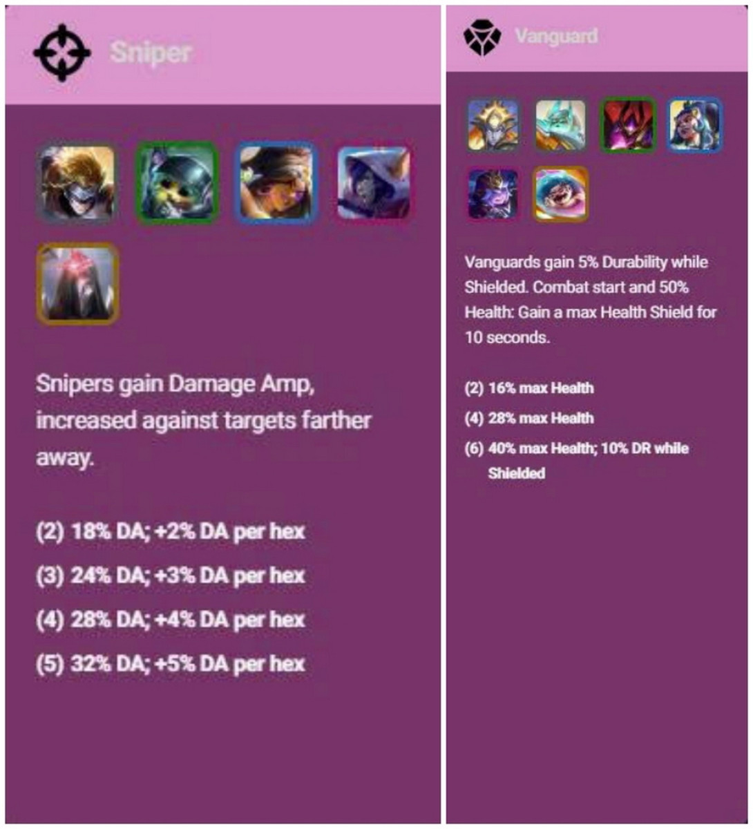 Hiệu ứng của hai hệ Sniper và Vanguard trong Đấu Trường Chân Lý mùa 17.