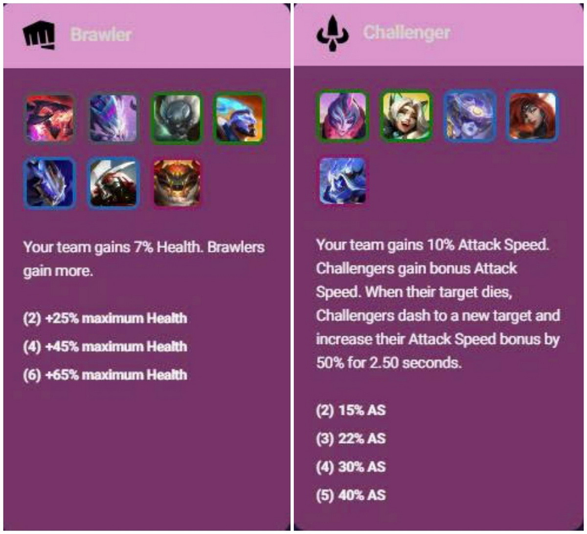 Hiệu ứng của hai hệ Brawler và Challenger trong Đấu Trường Chân Lý mùa 17.