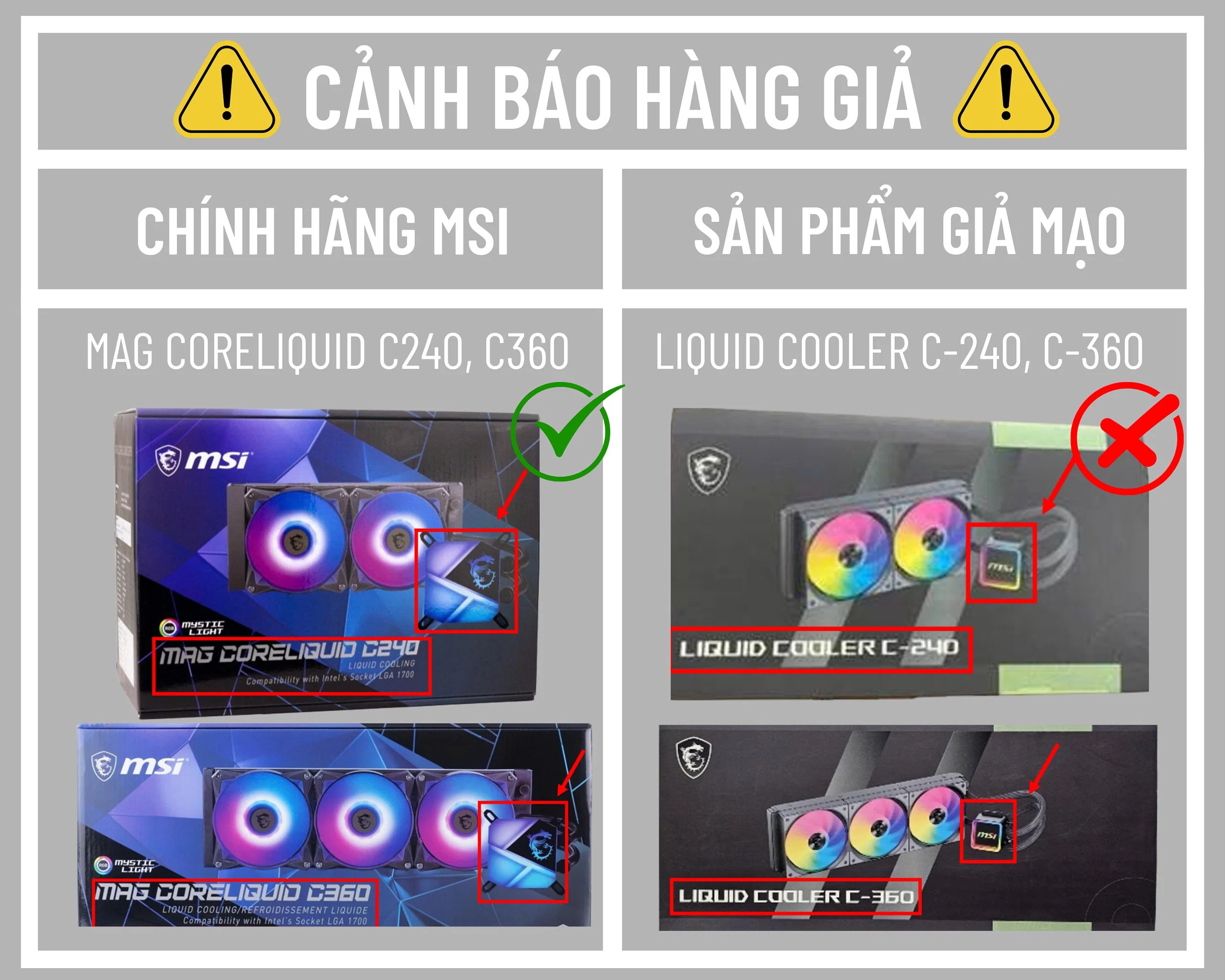 MSI cảnh báo tản nhiệt nước giả Liquid Cooler C-240 và C-360