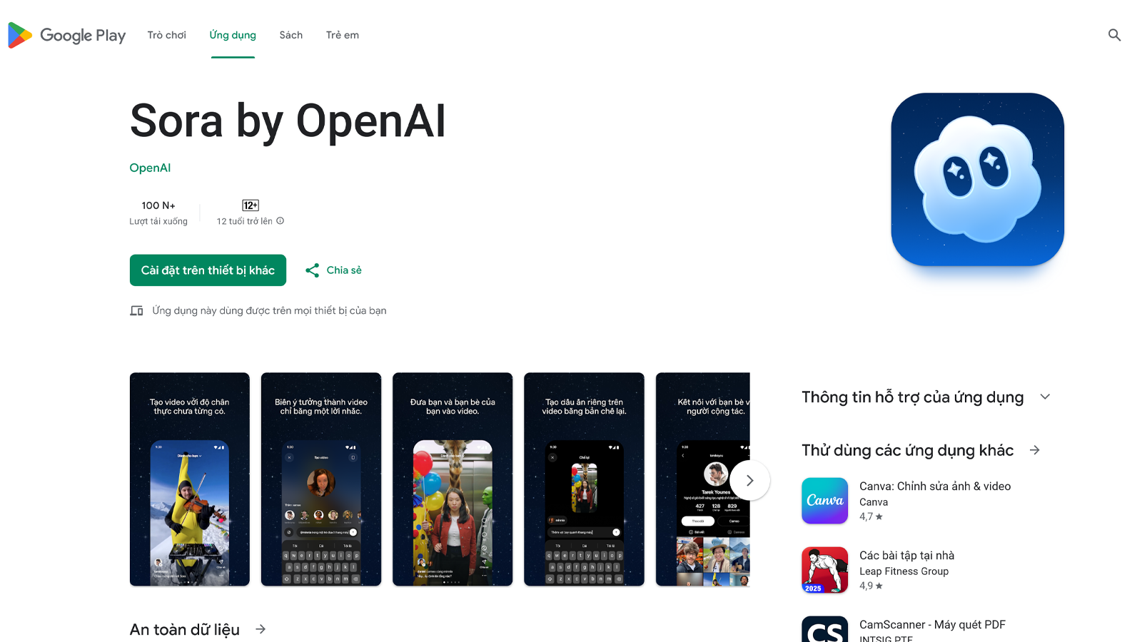 Sau nhiều mong đợi, người dùng Android tại Việt Nam cuối cùng cũng đã có thể chính thức trải nghiệm miễn phí Sora, ứng dụng tạo video bằng AI từ OpenAI. Ngoài Việt Nam, đợt ra mắt này còn bao gồm Mỹ, Canada, Nhật Bản, Hàn Quốc, Đài Loan và Thái Lan. Vài ngày trước đây, ứng dụng này đã ra mắt trên iOS tại Việt Nam và nhanh chóng đạt nhiều lượt tải xuống trong tuần đầu tiên. Với việc xuất hiện trên Google Play Store, Sora được dự đoán sẽ tiếp cận một lượng người dùng lớn hơn và có khả năng tăng thêm nhiều lượt tải về.